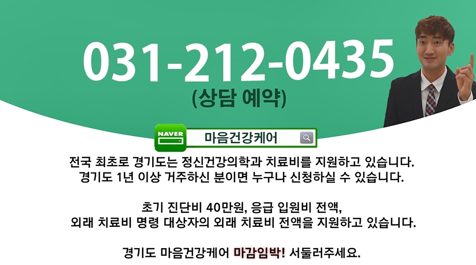 전국 최초로 경기도는 정신건강의학과 치료비를 지원하고 있습니다